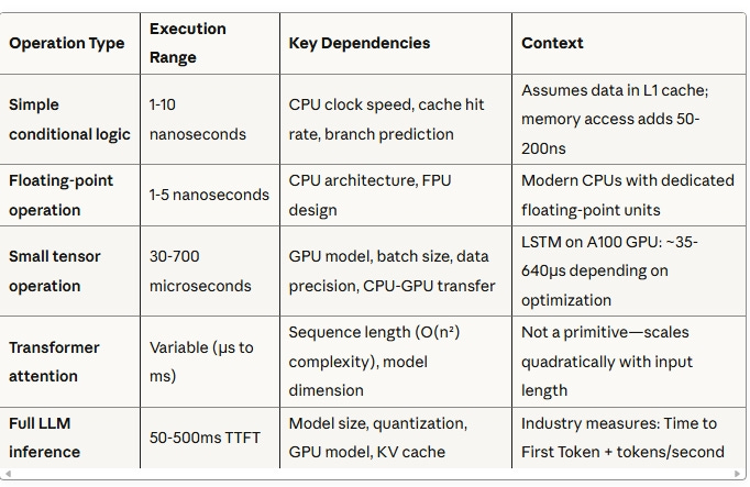 Here’s where computational physics meets practical engineering. The performance gaps between different computational primitives create the fundamental constraints that drive architectural decisions: